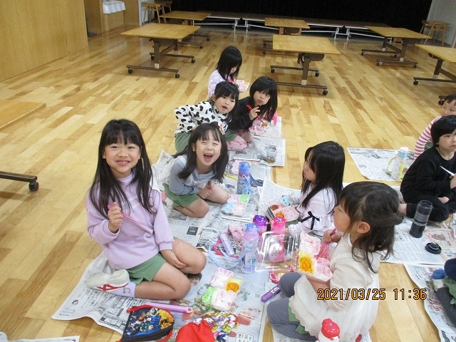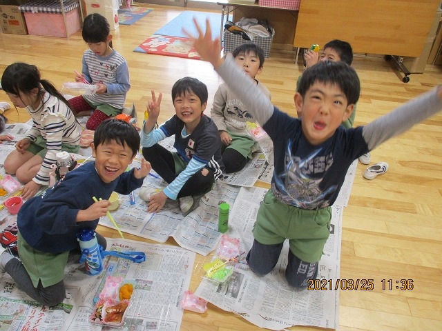 卒園式を前に、昨日は3・4・5歳児さんでピクニックごっこをしました。