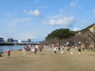 たこあげ 1月は、たんぽぽ・さくら・すみれぐみと、 くまぐみとに分かれて、 みどりの広場で「たこあげ」をしました。 ビニールに思い思いに描いた 【手作りの凧】を持ち、 ポカポカ陽気の中、風に乗ってあがる様子に 大喜び! 寒さに負けず 元気いっぱい走った子どもたちでした。