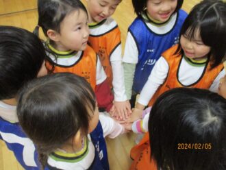 サッカー教室(年中・年長組) ばら組さん(4歳児)・さくら組さんを対象に 講師の先生をお招きしてサッカー教室を行いました。 あいにくのお天気だったので、 ホールでの活動になりましたが 一人一人楽しんで参加することができました。 始めにストレッチをしたり、 ボールに触れたり、蹴ってみたり 2グループに分かれて、ゴールまでボールを 蹴っていきシュート! 最後に、講師の先生対子ども達でミニサッカーゲームを 楽しみました。 ゲームの結果は、子ども達の勝利でした。