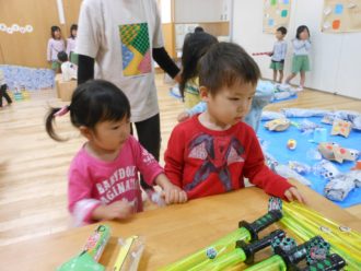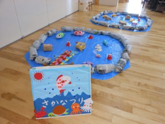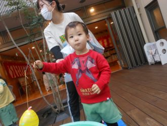 乳児組さんも、おもちゃを選んだりヨーヨーで遊んだり、お祭りを楽しみました。