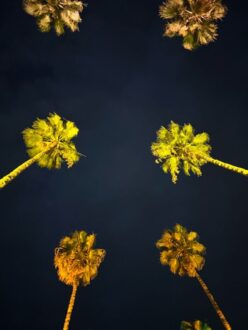 夜須町のヤ・シィーパークでは、色鮮やかに光るヤシの木のイルミネーションが見られますよ🌴