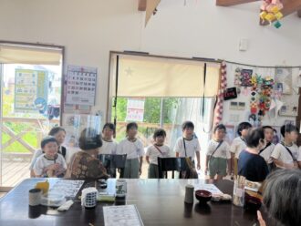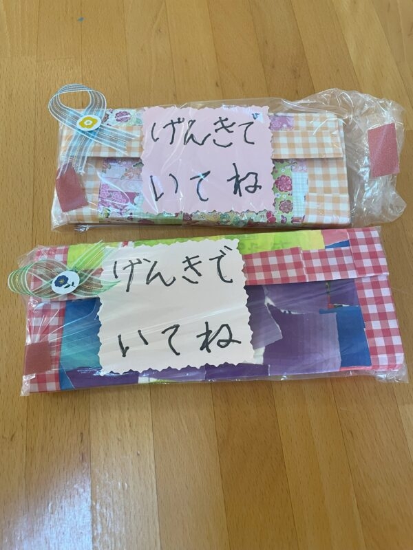 敬老の日を前に、年長組の子ども達が地域のおじいさん・おばあさんにと、気持ちのこもったプレゼントを100個作りました。