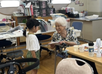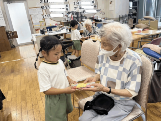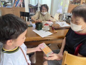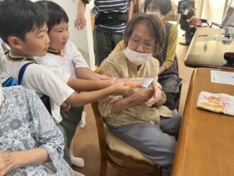 そして一人ひとり、おじいさん・おばあさんに手作りのプレゼントを手渡しました。