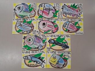 「このお魚見たことある」「長いねぇ」など話しながら、魚のヒレも上手に描いていましたよ!