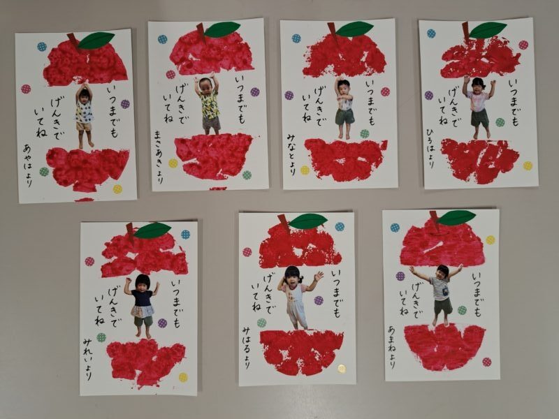 りんごの間に子ども達の写真が入って可愛く出来上がり🎵