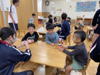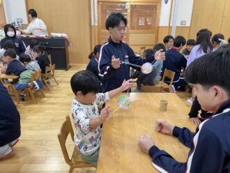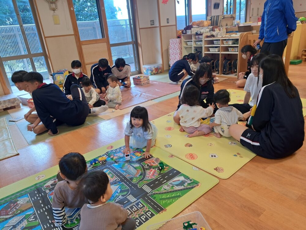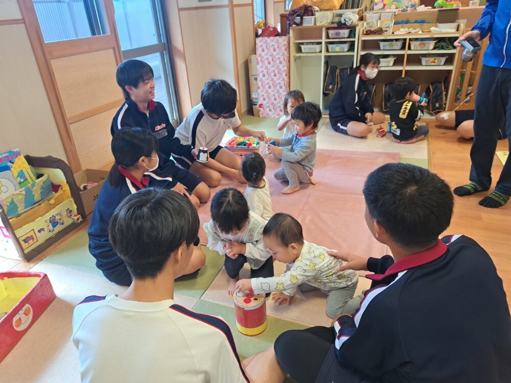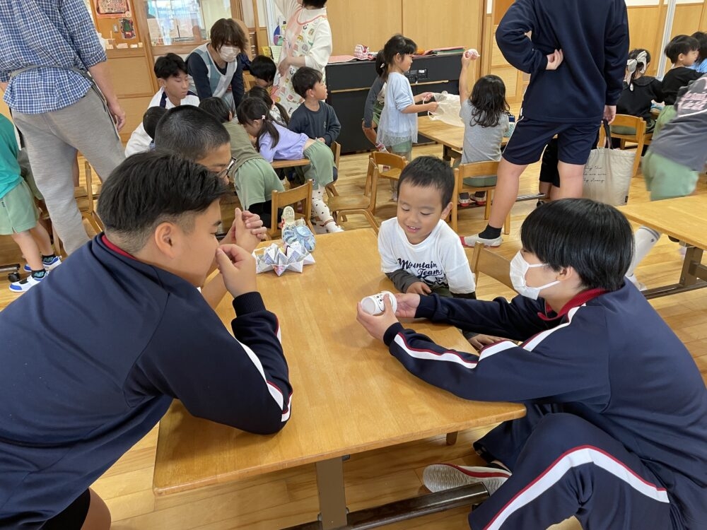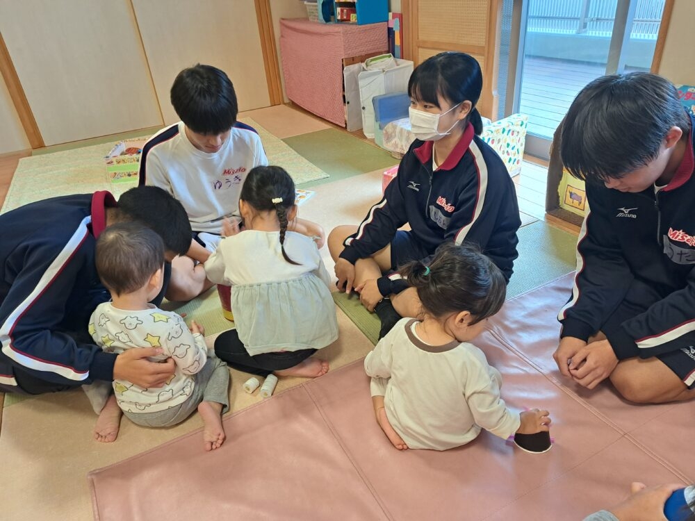 11月5・6日の2日間、三里中学校の3年生が家庭科の授業の一環で保育園に遊びに来てくれていました。