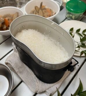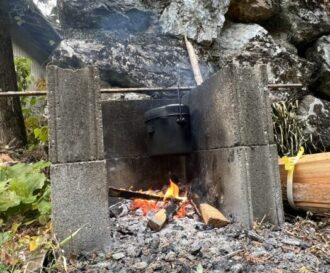庭では飯盒炊飯もしてくださり、私自身が学生の頃、学校行事でやったなぁとすごく懐かしい記憶が蘇ってきました。鮎やご飯炊けるまでの間にこれまでの子育てのことや小屋ができた経緯などいろいろなお話も聞かせていただきながらのんびりとした時間が流れていました。