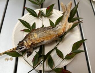ある訪問での出来事。以前より訪問に行かせていただいているお家の方が芋炊きを振る舞ってくださいました。お庭には素敵な小屋があり、自然の中にあるので癒しの空間となっていました。薪ストーブにはお鍋が置かれてあり、なんと2日前から仕込んでくださっているとのこと!そして薪ストーブの前では鮎の塩焼きと焼き芋を炭火で焼いてくださっていて、地域で採れた鮎だそうでとっても立派なサイズでした!