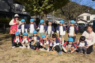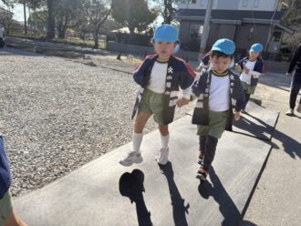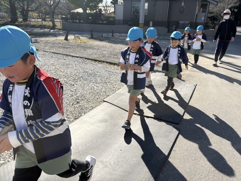 12月に2日間、年長組さんが拍子木を持ち地域に火の用心を呼びかけて回りました。