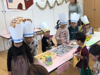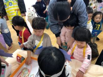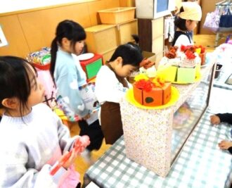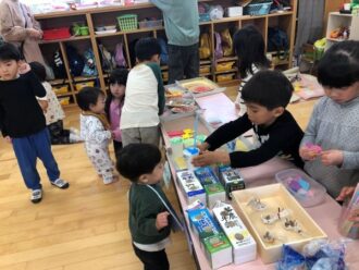 12月のおみせやごっこに向けて品物づくり、お店づくりを楽しんでいた子どもたち。