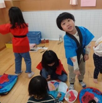 幼児組の子どもたちは、話し合いの場をもち、そこから少しずつ形にしていき、