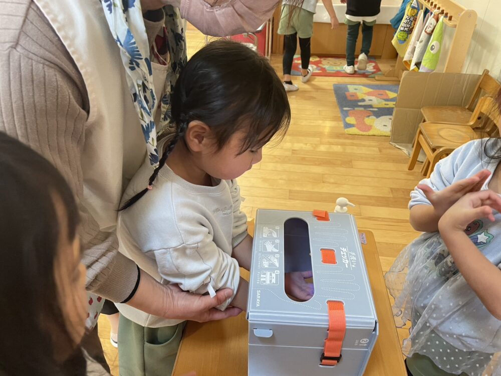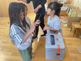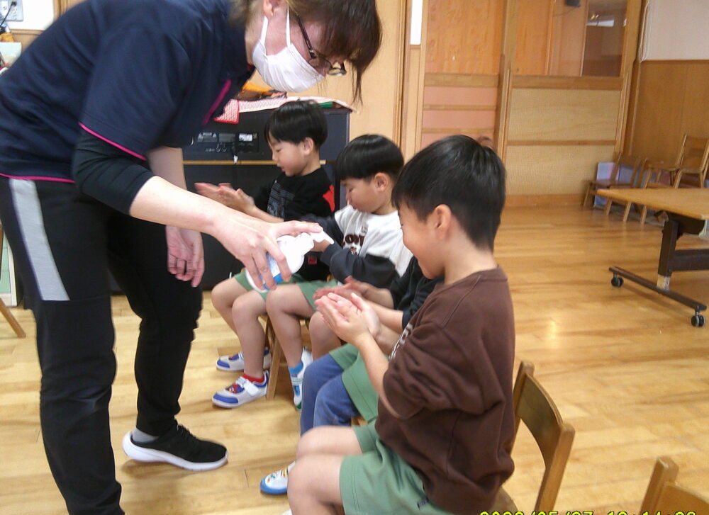 洗ったあとは「ういるす」や「バイキン」が気になり手をどこに置いたらいいか分からず胸のあたりに浮かせていたお友だちもいましたよ。