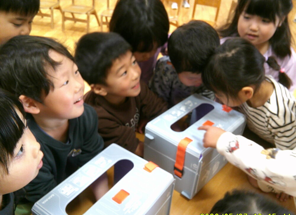 石けんをつけて洗った手は汚れがきちんと取れていることを、写真を見ながら教えてもらったり「ういるす」について聞いたりしました。